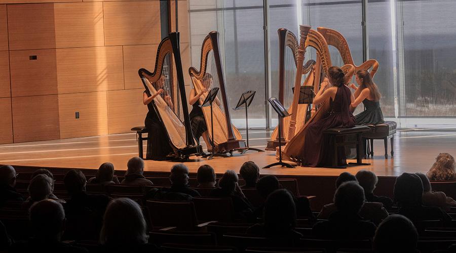 Marguerite Lynn Williams, director; Lynn Koschnitzke, Marin Trendel, and Madeleine Worrall, harp