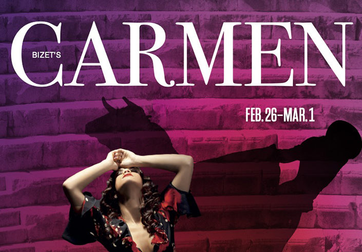 Northwestern University Opera Theater stages George Bizet’s “Carmen,” a work seldom mounted at the university level due to its exceptional vocal and dramatic demands. The production presented by the Henry and Leigh Bienen School of Music has just 4 performances at Cahn Auditorium Feb. 26 through March 1.